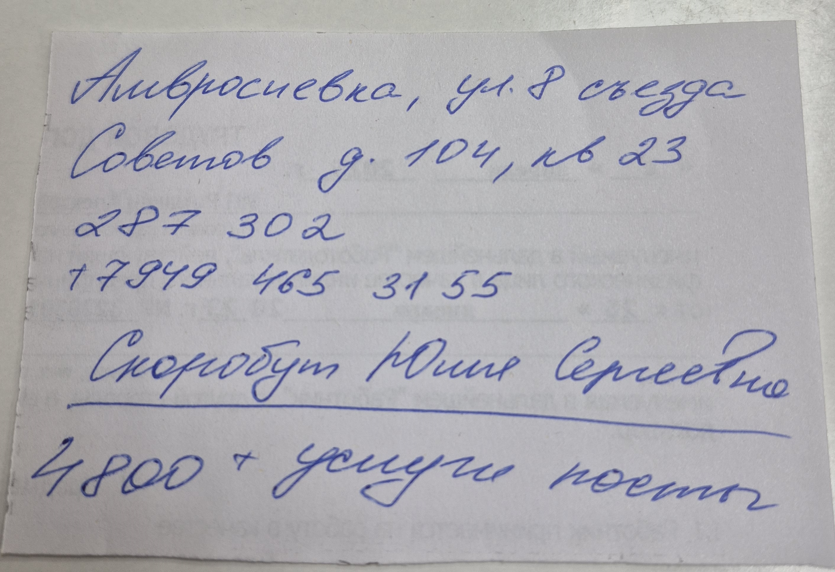 4. Пописываем куда отправить- ФИО полностью - Почтовый индекс - Телефон - Адресс прописки - Если НЕ ОПЛАЧЕНО еще, написать сумму + "услуги почты" - Если УЖЕ ОПЛАЧЕНО, написать "оплачено"